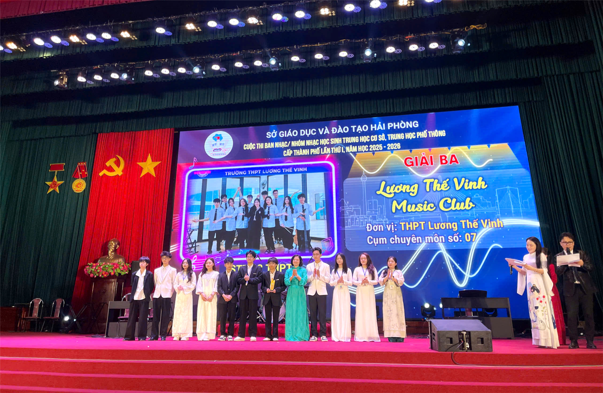 Tham gia Cuộc thi Ban nhạc – Nhóm nhạc học sinh thành phố năm học 2025–2026, Câu lạc bộ Âm nhạc Trường THPT Lương Thế Vinh đã xuất sắc đạt giải Ba. Thành tích này không chỉ là niềm tự hào mà còn là minh chứng cho hiệu quả của việc tổ chức các sân chơi nghệ thuật trong nhà trường.