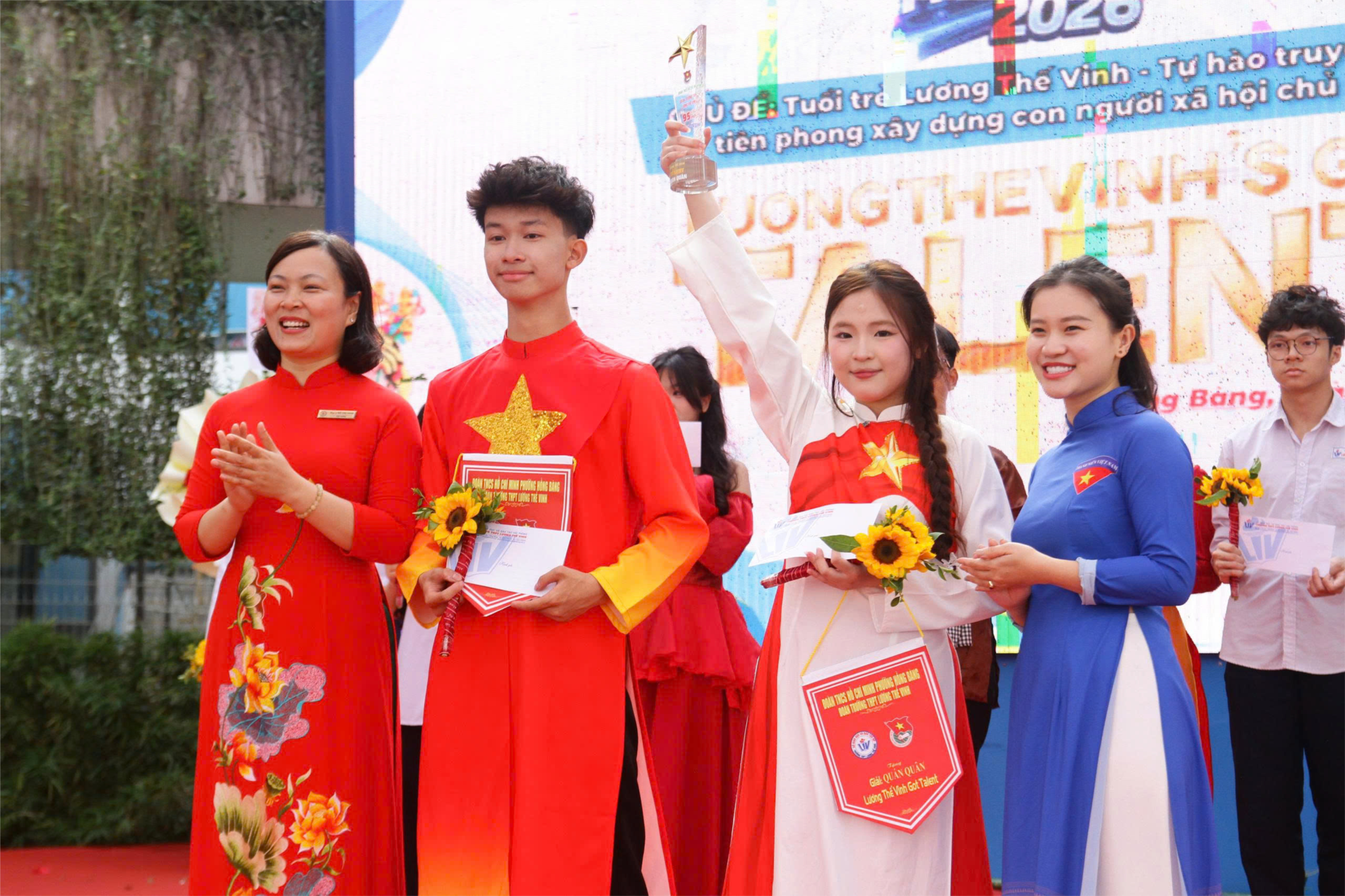 - 🏆 GIẢI NHẤT: Tập thể lớp 10A2 Với tiết mục múa "Giai điệu Việt Nam mình", lớp 10A2 đã chinh phục hoàn toàn khán phòng bằng những động tác uyển chuyển, sự đầu tư công phu về trang phục và thông điệp tôn vinh vẻ đẹp gấm vóc non sông. Một chiến thắng thuyết phục dành cho những tân binh đầy triển vọng.