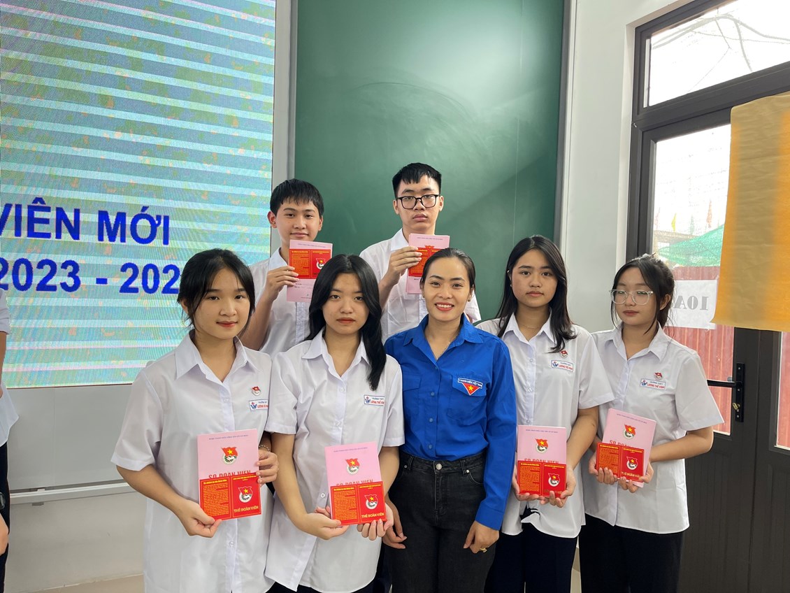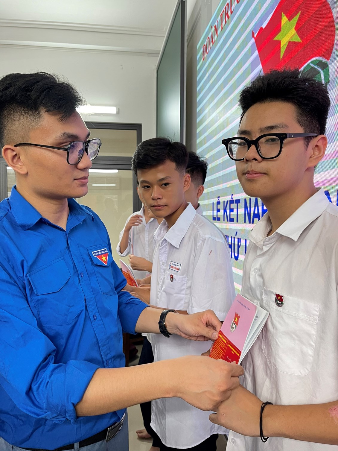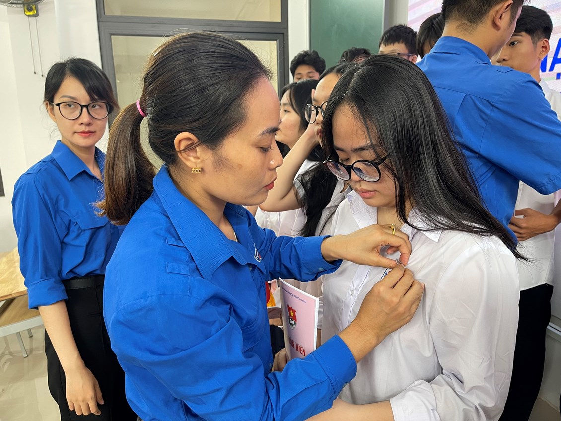 Đoàn viên mới nhận nghị quyết và huy hiệu Đoàn