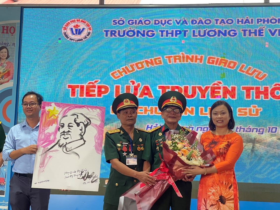 Nhà trường cũng rất vinh dự và vui mừng khi đón nhận tình cảm của Anh hùng lực lượng vũ trang, Nhà điêu khắc Lê Duy Ứng đã dành tặng bức chân dung về Chủ tịch Hồ Chí Minh. Ông Lê Duy Ứng sinh năm 1947, quê ở Quảng Bình, sau khi đã tốt nghiệp trường Đại học Mỹ thuật Hà Nội, ông lên đường nhập ngũ tham gia cách mạng. Mùa xuân năm 1975, trước thời khắc lịch sử thống nhất đất nước, tại cửa ngõ Sài Gòn thì ông bị trọng thương hỏng cả 2 mắt, khi ấy ông xé mảnh áo quấn tay và chấm vào mắt, ông dùng máu mình để vẽ chân dung Bác Hồ, cờ Tổ quốc, cờ Đảng kèm dòng chữ “Bác Hồ ánh sáng và niềm tin, con nguyện dâng người tuổi thanh xuân”. Chương trình giao lưu kể chuyện lịch sử với các anh hùng - nhân chứng lịch sử là hoạt động đầy ý nghĩa.