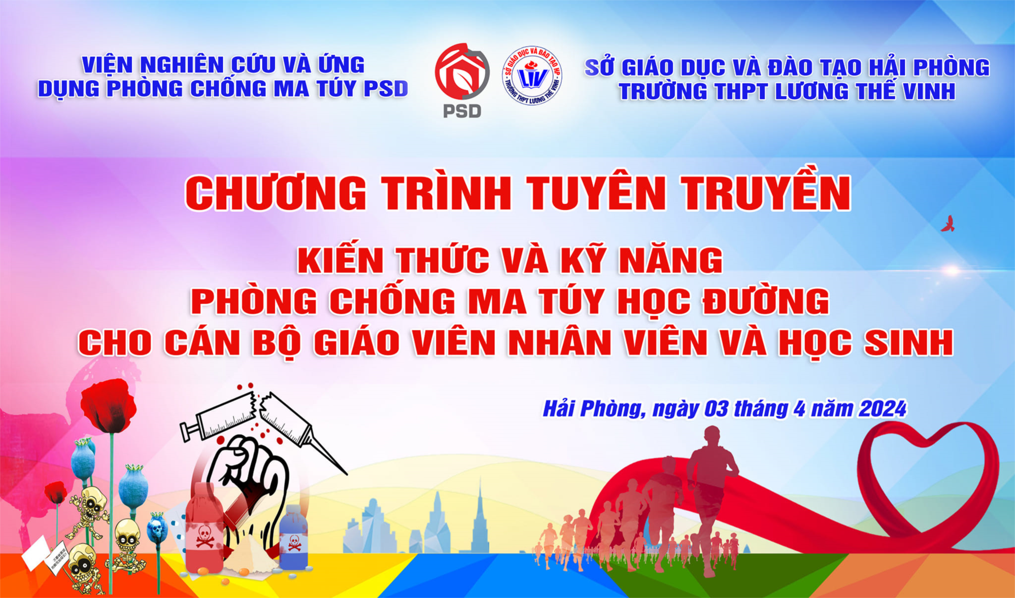 Ngày 3/4/2024 trường THPT Lương Thế Vinh phối hợp với Viện nghiên cứu và ứng dụng phòng chống ma túy PSD tổ chức "chương trình tuyên truyền kiến thức và kĩ năng phòng, chống ma túy cho cán bộ giáo viên nhân viên và học sinh nhà trường.