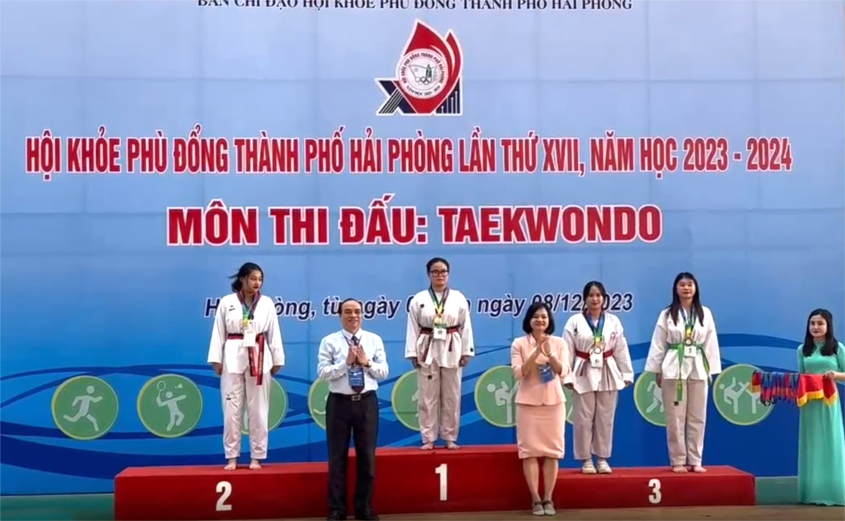 Chiều ngày 8/12/2023, tại Khu Liên hợp thể thao thành phố Học sinh Vũ Thị Yến Nhi lớp 10A5 Trường THPT Lương Thế Vinh xuất sắc giành huy chương vàng môn TAEKWONDO hạng cân đến 63Kg trong khuôn khổ Hội khỏe Phù Đổng thành phố Hải Phòng lần thứ XVII, năm học 2023 – 2024.
