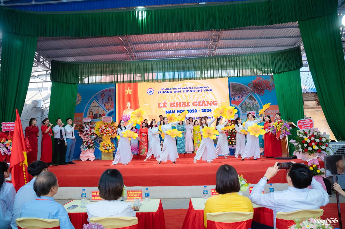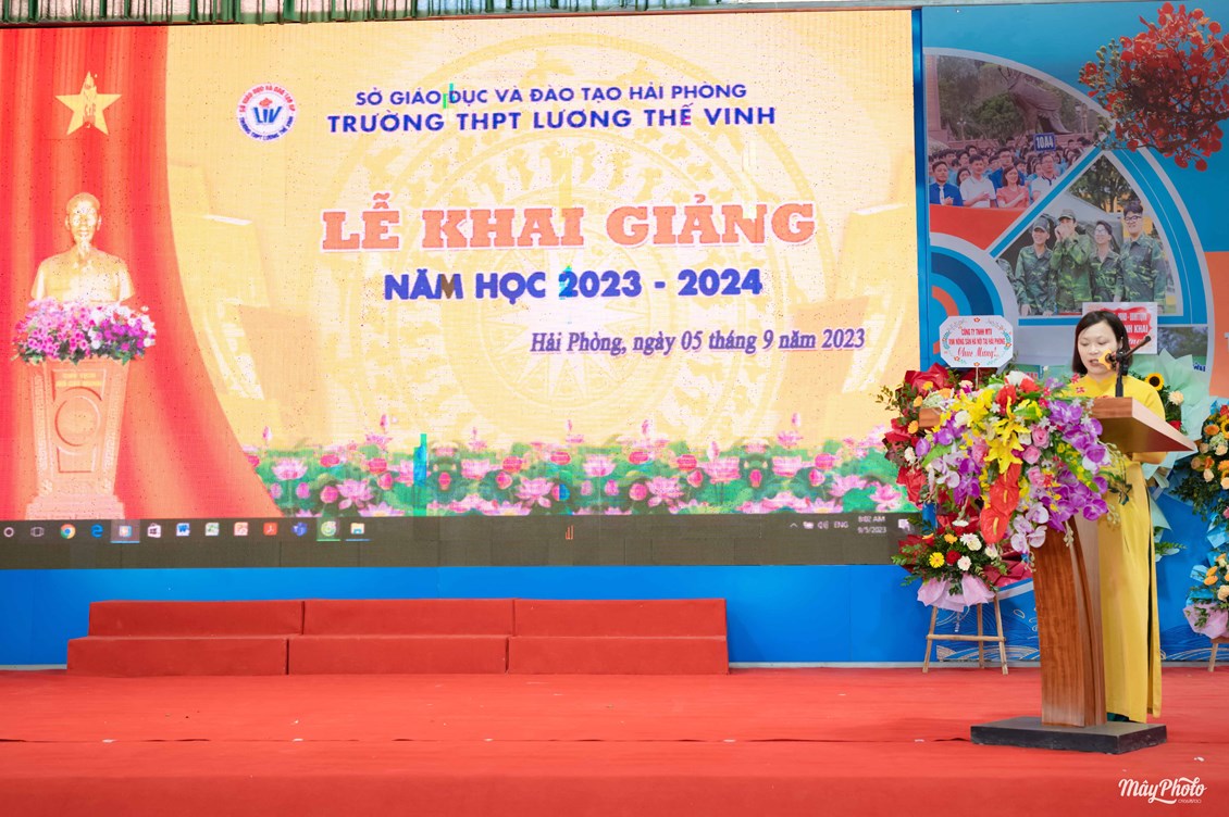 Sau phần văn nghệ rất sôi nổi, thầy Đoàn Văn Nghĩa thay mặt cho BGH nhà trường đọc thư chúc mừng của chủ tịch nước nhân dịp khai giảng năm học mới. Cô Hồ Thị Dinh - Bí thư chi bộ, Hiệu trưởng nhà trường đã đọc diễn văn khai giảng giảng năm học 2023-2024 - ghi nhận những nỗ lực của thầy cô giáo và các em học sinh trong năm học qua đã đạt được những thành tích khả quan trong dạy và học. Nhờ vậy mà tỉ lệ Tốt nghiệp đạt 100% nhiều môn thi tốt nghiệp của nhà trường có kết quả trung bình cao hơn trung bình chung của thành phố. Năm học 2022-2023 nhà trường đã tổ chức thành công chuyên đề cấp thành phố được đánh giá là một trong những trường tích cực trong công tác chuyển đổi số, đổi mới phương pháp giảng dạy.