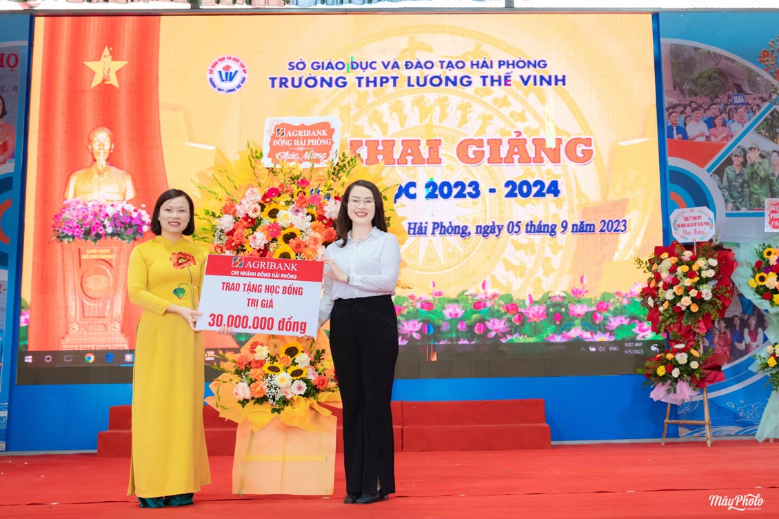 Tại buổi lễ đại diện Ngân hàng Agribank Chi nhánh Đông Hải Phòng đã trao suất học bổng cho học sinh có hoàn cảnh khó khăn vươn lên trong học tập. Những món quà tuy không lớn nhưng là nguồn động lực cho các em cố gắng, phấn đấu vươn lên.