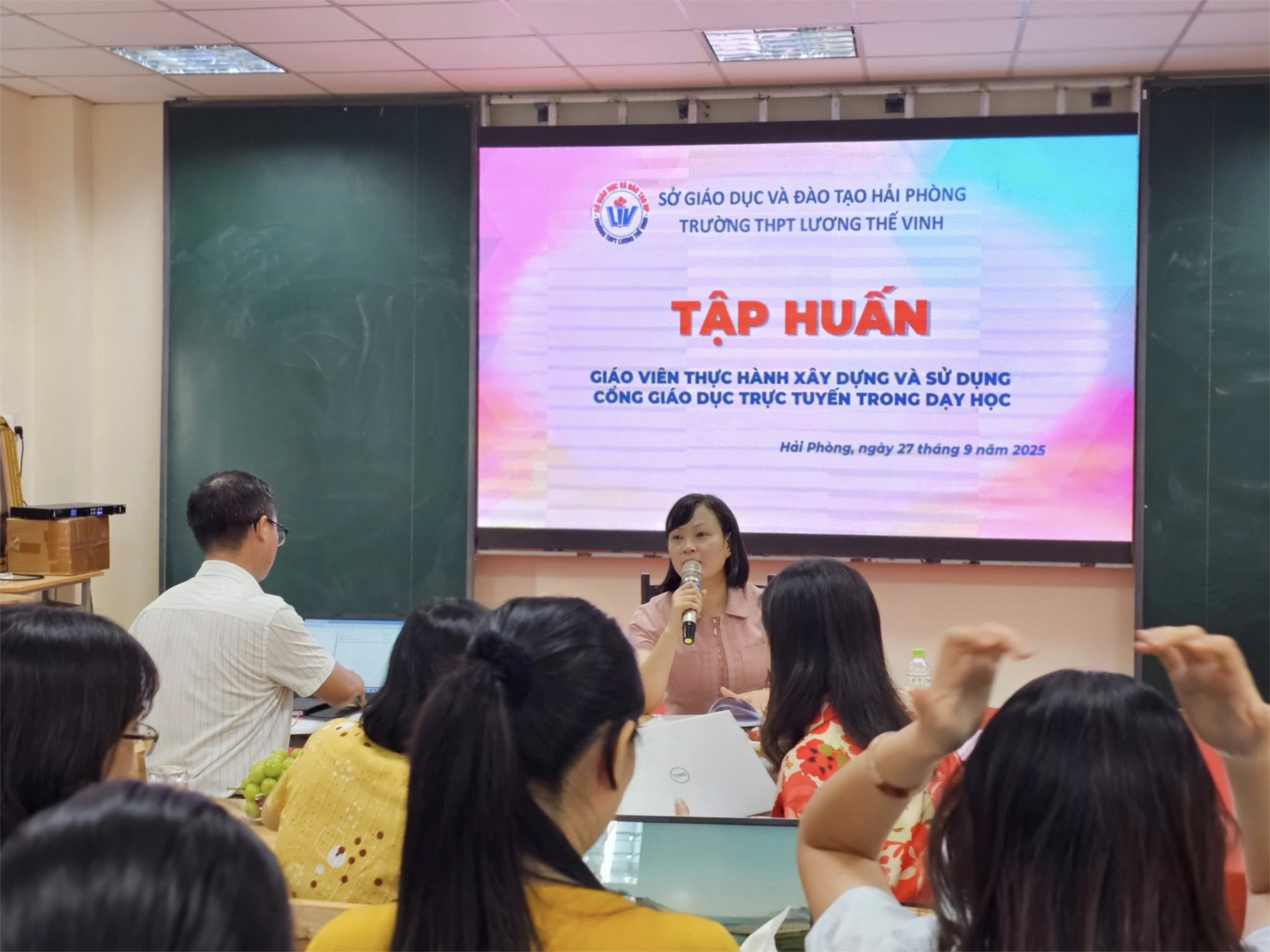 Tiếp nối những thành công trong việc vận hành hiệu quả mô hình dạy và học trực tuyến, đồng thời nhằm đẩy mạnh lộ trình chuyển đổi số giáo dục, chiều ngày 27 tháng 9 năm 2025 vừa qua, trường THPT Lương Thế Vinh đã tổ chức thành công buổi tập huấn chuyên môn quan trọng với chủ đề "Thực hành xây dựng và sử dụng cổng giáo dục trực tuyến trong dạy học" cho toàn thể đội ngũ giáo viên nhà trường.