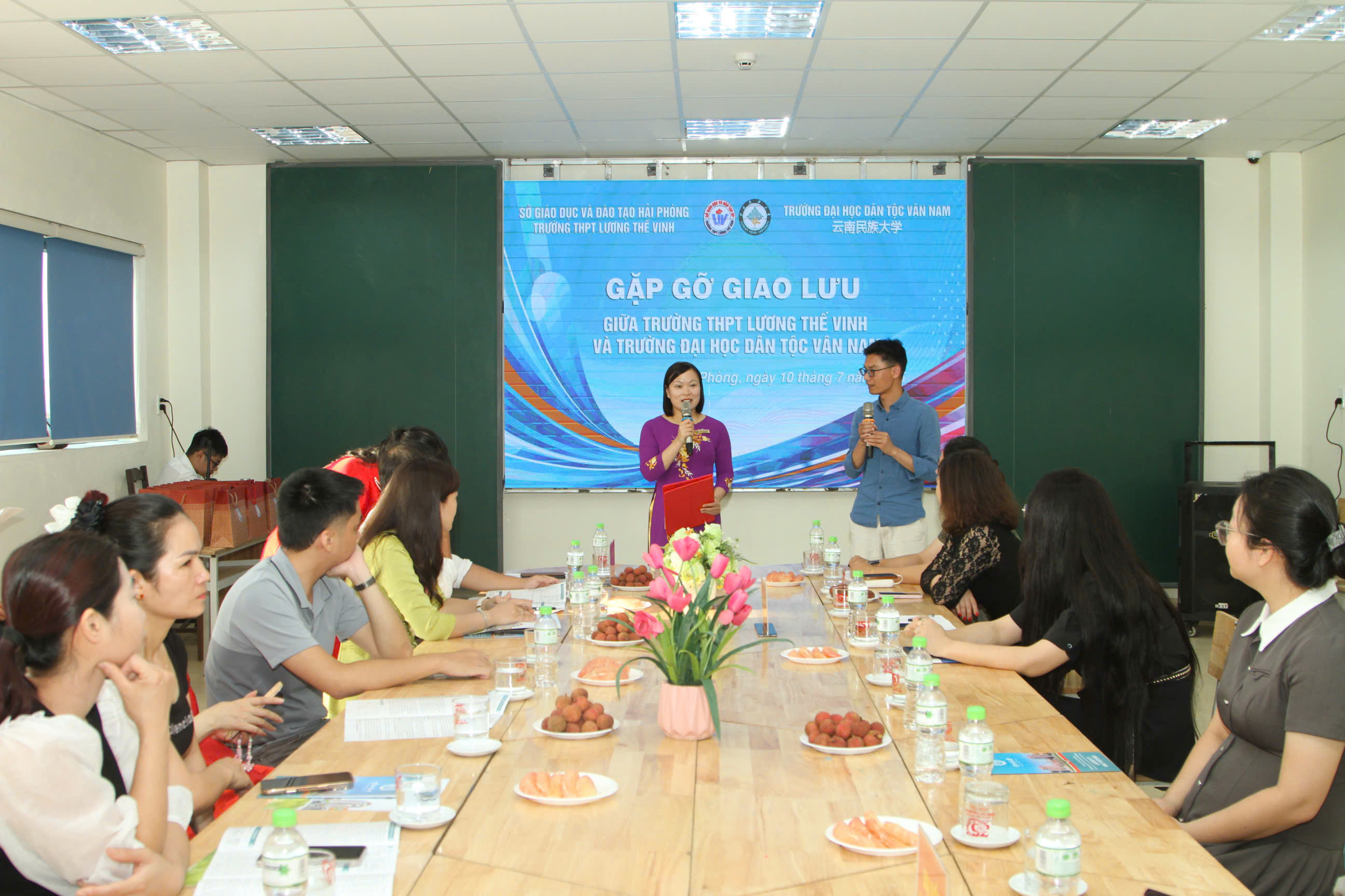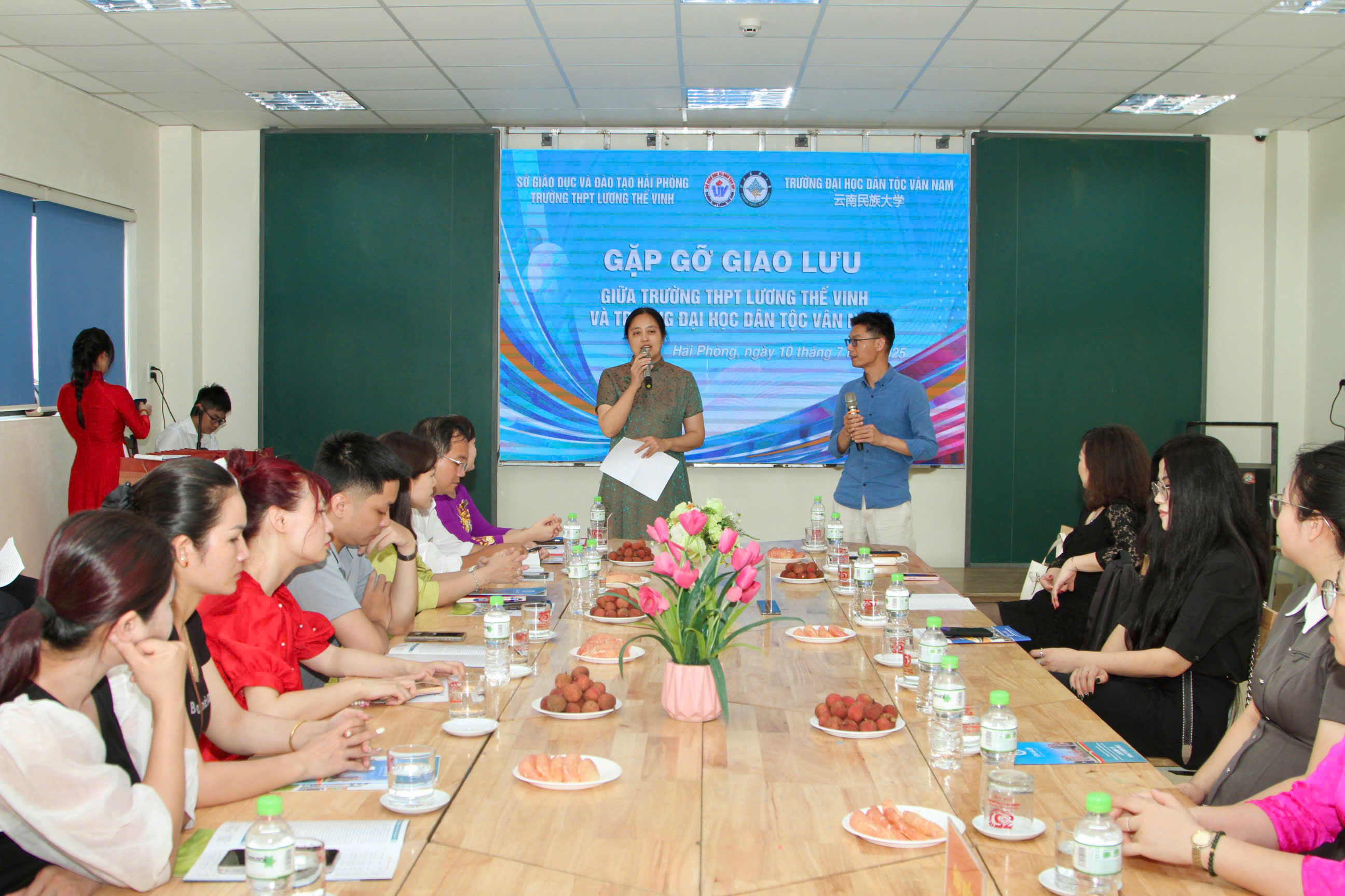 (Haiphong.gov.vn) – Chiều 10/7, Trường THPT Lương Thế Vinh (TP. Hải Phòng) tổ chức Chương trình gặp gỡ, giao lưu với Đoàn đại biểu Trường Đại học Dân tộc Vân Nam (Trung Quốc) do bà Tào Yến – Viện trưởng Viện Quốc tế, Đại học Dân tộc Vân Nam làm Trưởng đoàn.