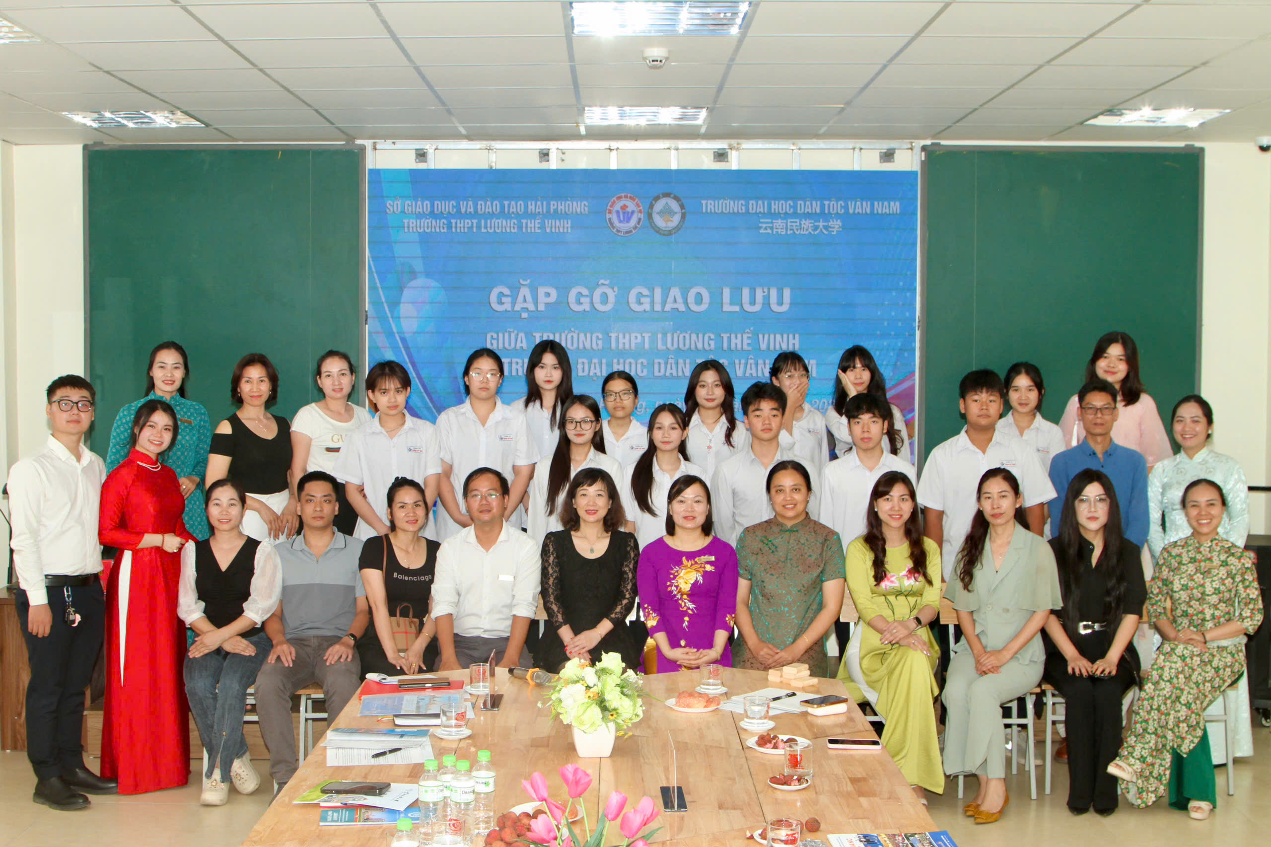 Các thầy cô, phụ huynh và học sinh Trường THPT Lương Thế Vinh chụp ảnh lưu niệm cùng Đoàn đại biểu Trường Đại học Dân tộc Vân Nam (Trung Quốc).Trường Đại học Dân tộc Vân Nam tọa lạc tại thành phố Côn Minh, tỉnh Vân Nam (Trung Quốc), được thành lập năm 1951. Đây là trường Đại học trọng điểm của Trung Quốc trong đào tạo và nghiên cứu về dân tộc học, xã hội học, ngôn ngữ và văn hóa các dân tộc thiểu số. Trường hiện có quan hệ hợp tác với gần 100 trường Đại học và Viện nghiên cứu tại hơn 30 quốc gia.