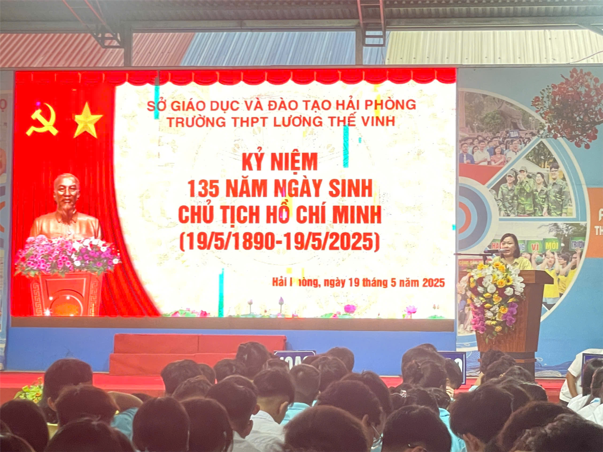 Sáng ngày 19/5/2025, Trường THPT Lương Thế Vinh đã long trọng tổ chức Lễ kỷ niệm 135 năm Ngày sinh Chủ tịch Hồ Chí Minh (19/5/1890 – 19/5/2025). Buổi lễ diễn ra trong không khí trang nghiêm, đầy xúc động, với sự tham dự của toàn thể cán bộ, giáo viên, nhân viên và hơn 700 học sinh khối 10, 11 của nhà trường. Tham dự buổi lễ có sự hiện diện của Cô Hồ Thị Dinh – Bí thư Chi bộ, Hiệu trưởng nhà trường, cùng các thầy cô trong Ban Giám hiệu, các giáo viên, cán bộ nhân viên và đông đảo học sinh.