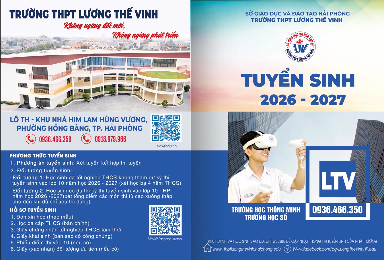 TRƯỜNG THPT LƯƠNG THẾ VINH - HẢI PHÒNG THÔNG BÁO TUYỂN SINH LỚP 10 NĂM HỌC 2026 - 2027 (Dự kiến)